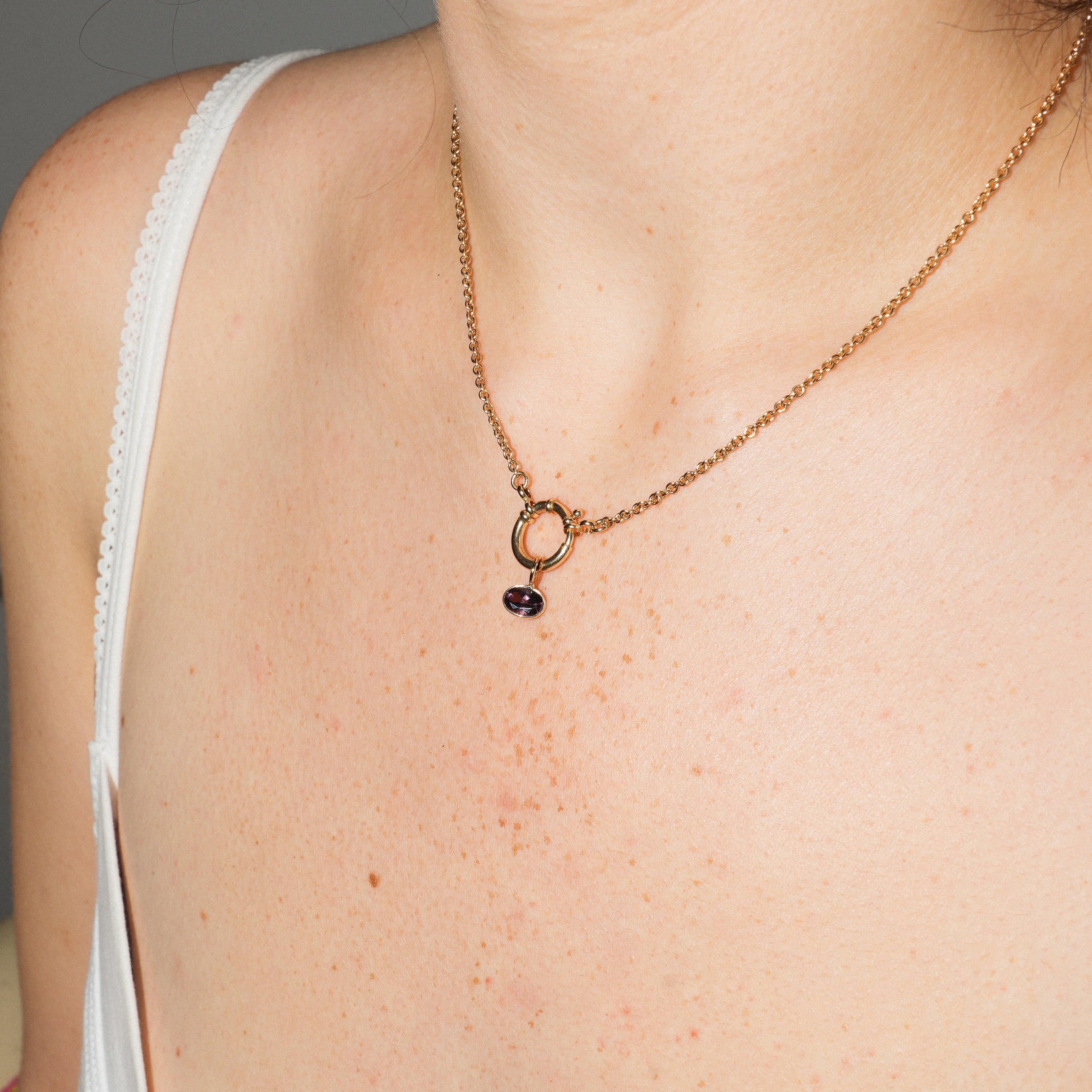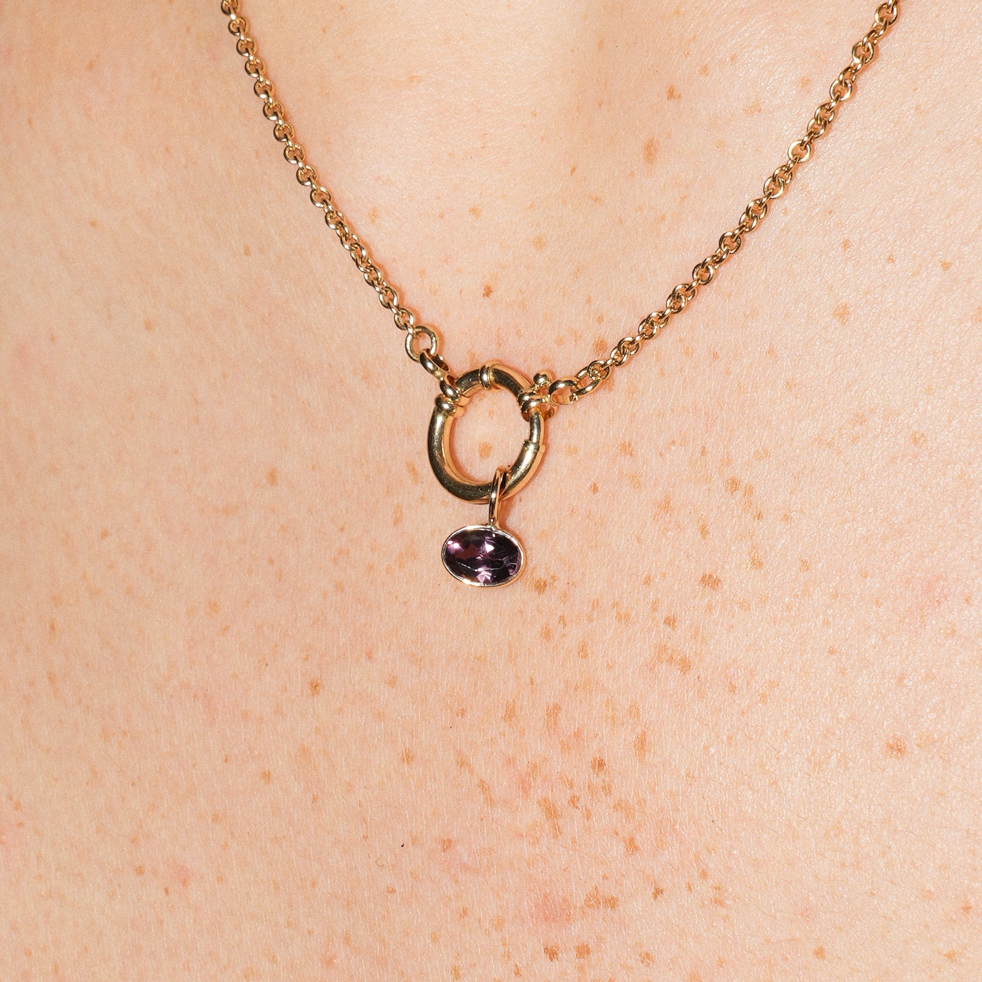 Hyacinth Tourmaline East West Oval Cut Charm in Yellow 14k Gold