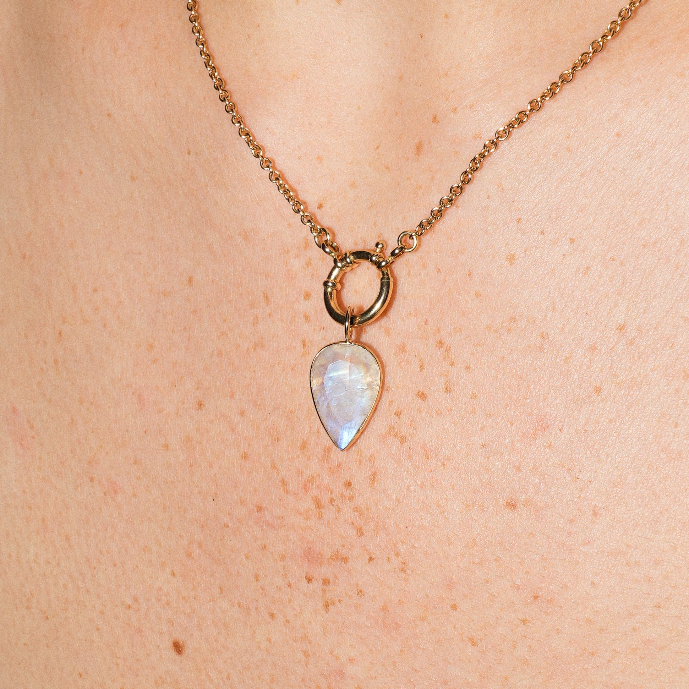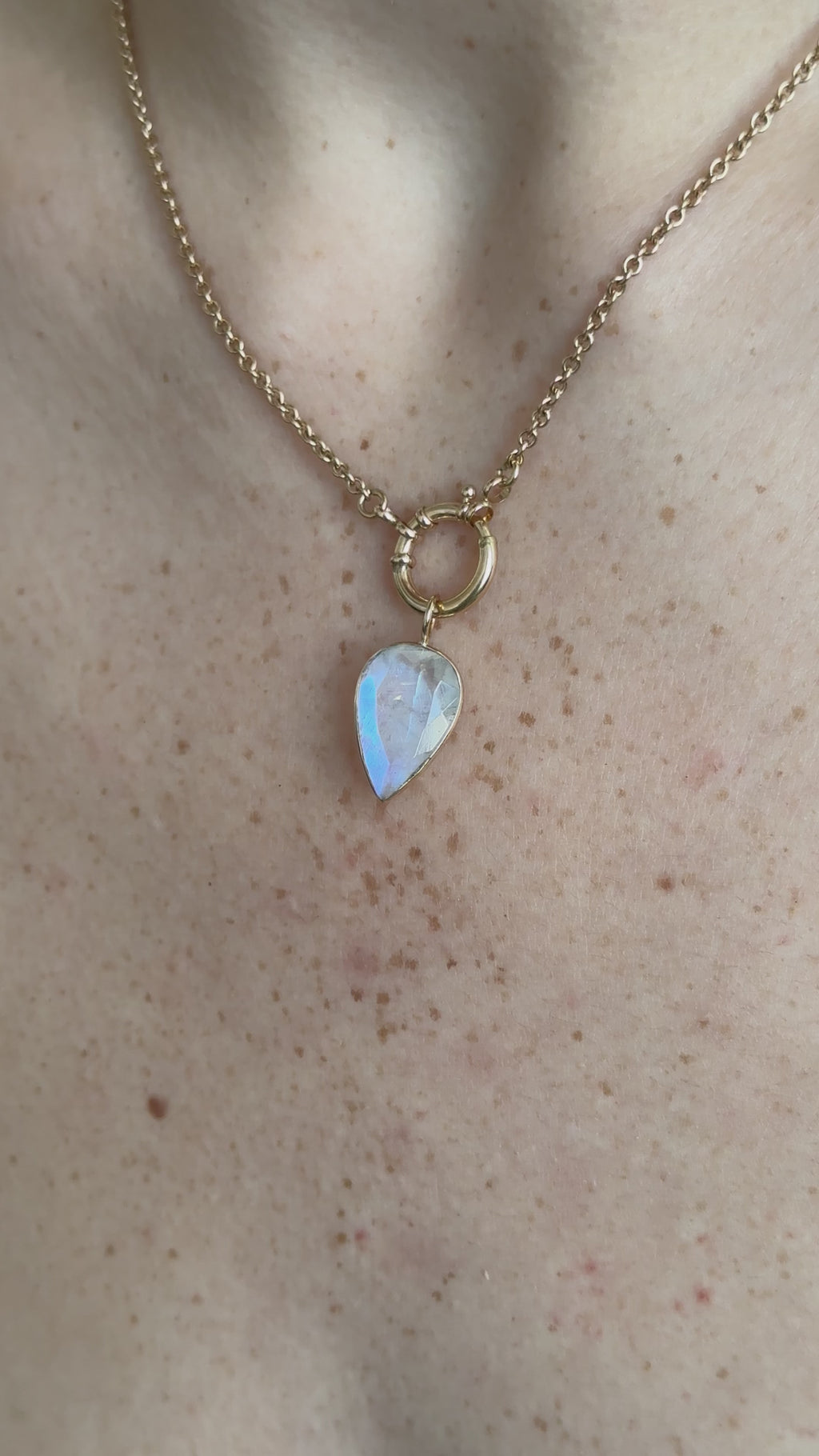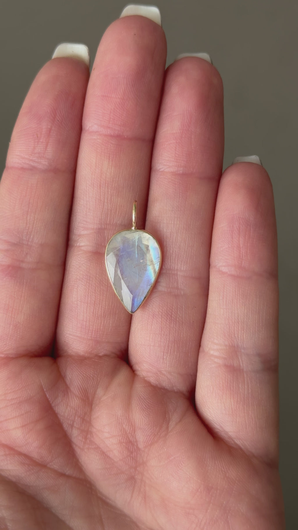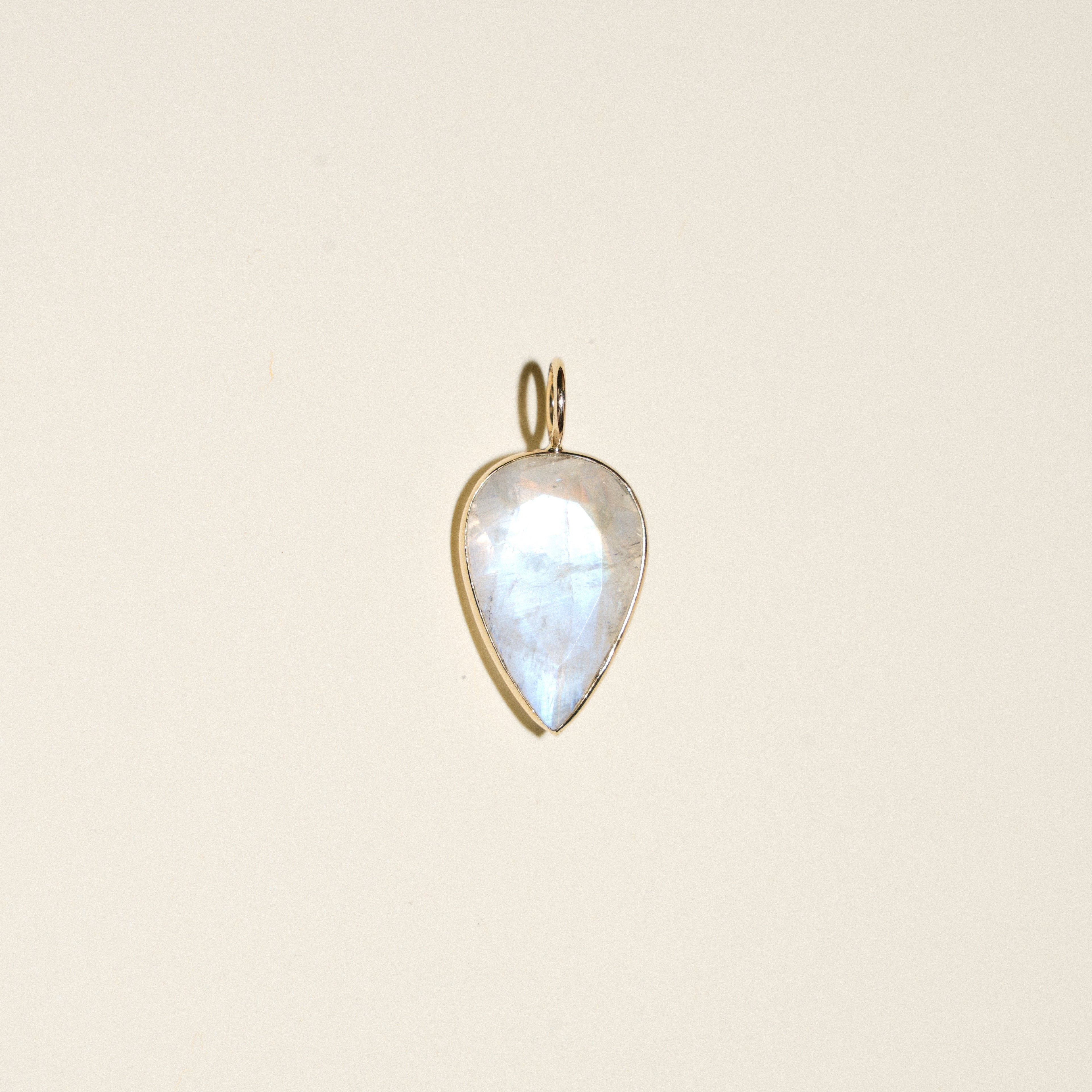 Iridescent Moonstone Inverted Teardrop Cut Charm in 14k Yellow Gold