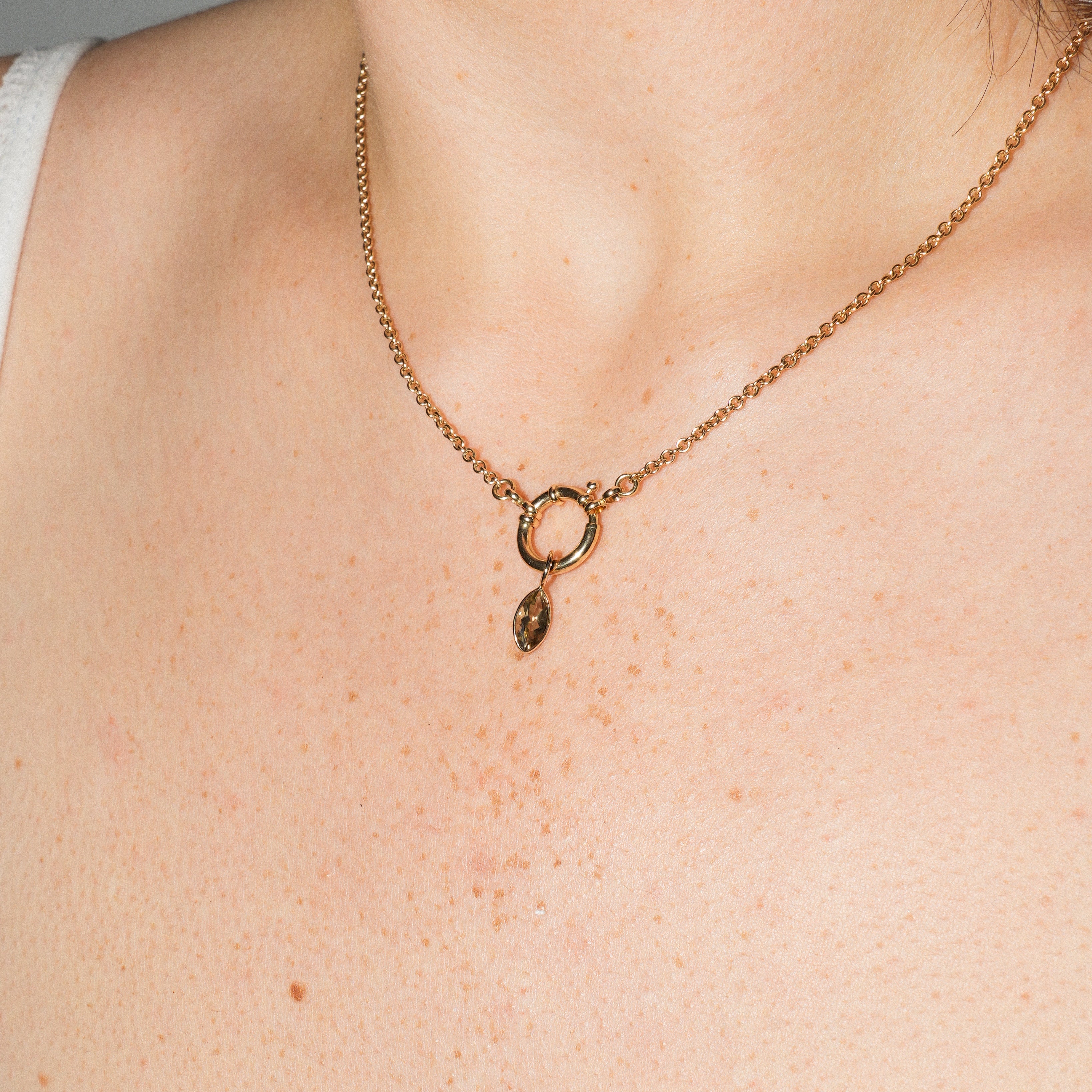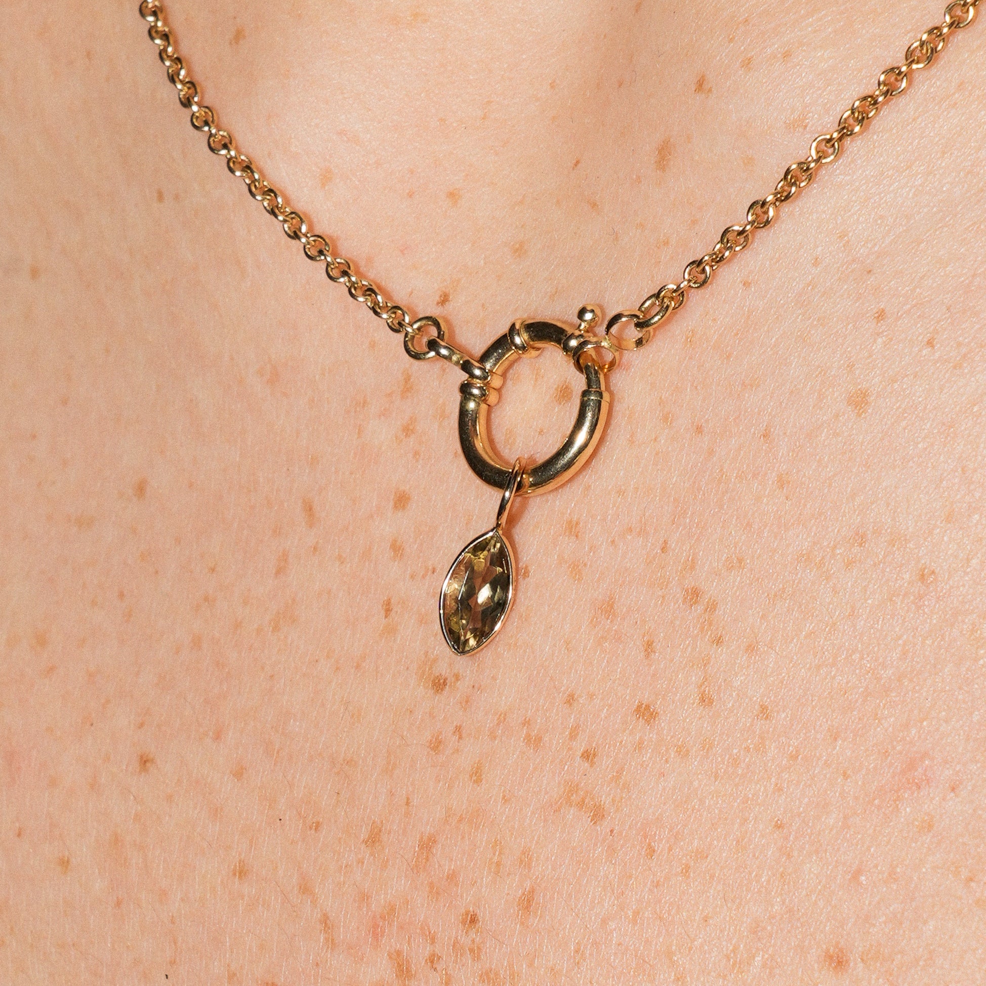 Olive Green Tourmaline Marquise Cut Charm in 14k Yellow Gold