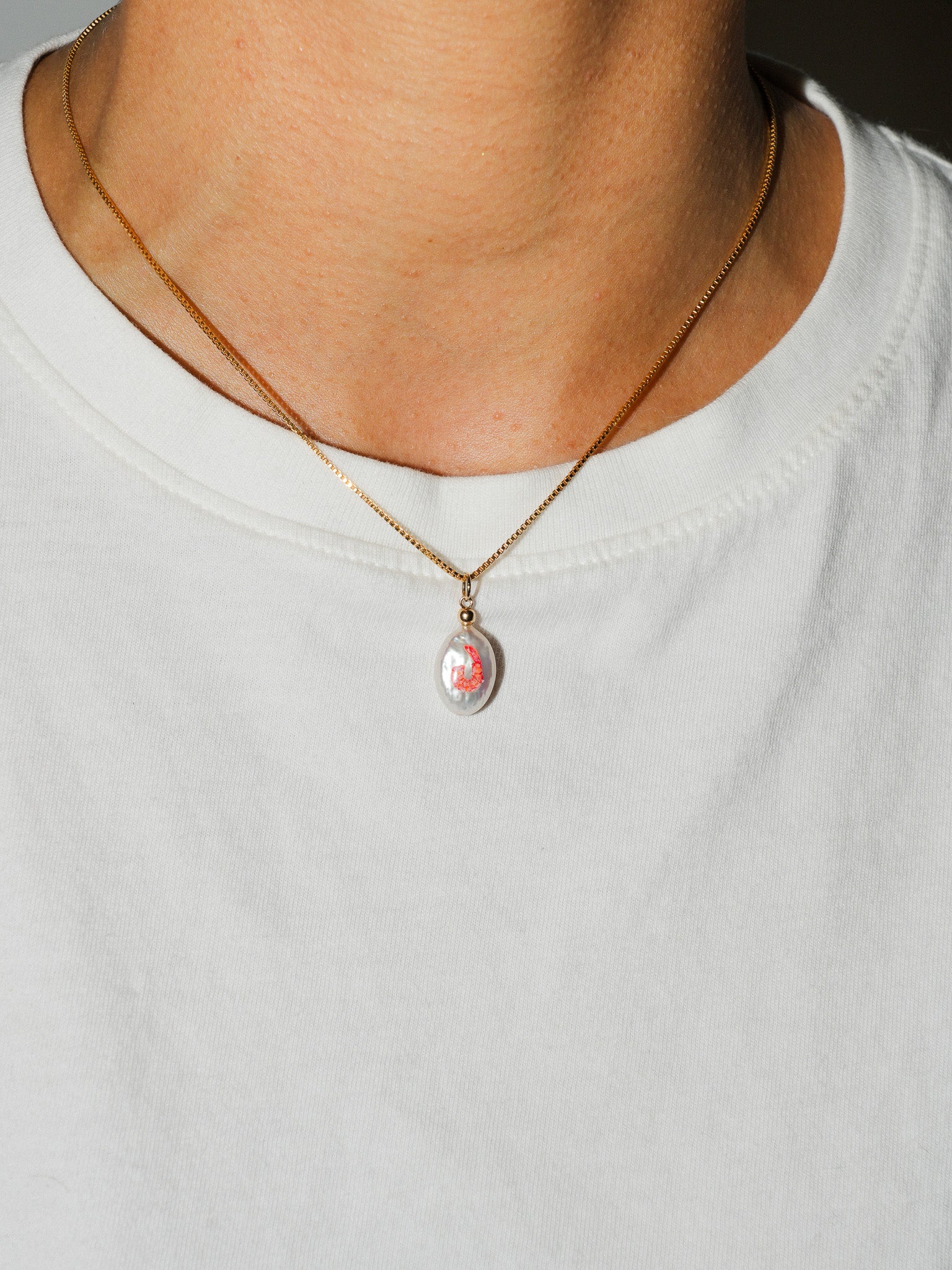 This charm is part of our unique hand-painted freshwater pearl collection. Each charm made-to-order by our in house artists and unique! Please expect natural variation in each pearl.